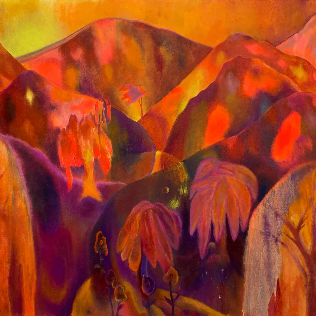 Dreamsong is pleased to share details on the gallery’s debut presentation at the Dallas Art Fair, featuring a solo presentation of recent paintings by Los Angeles-based artist Sarah Thibault (b. 1980, Minneapolis). In luminous palettes of vivid orange, dreamy pinks and blues and neon purple, they depict trees, mountains and volcanoes as embodiments of a vast range of human emotion and spirituality. Walks in the forest nearby Thibault’s home in Los Angeles reinvigorated the artist’s plein air drawing practice and led to a new body of work that will debut at the Dallas Art Fair.