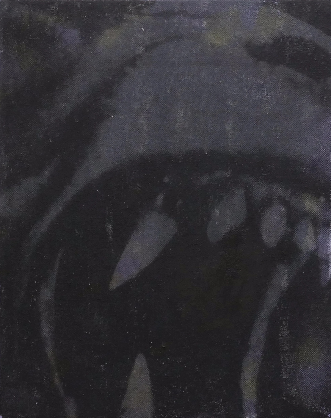 Lee Noble. Screen Test, 2024. Oil, toner on canvas over panel. 10 x 8 in.