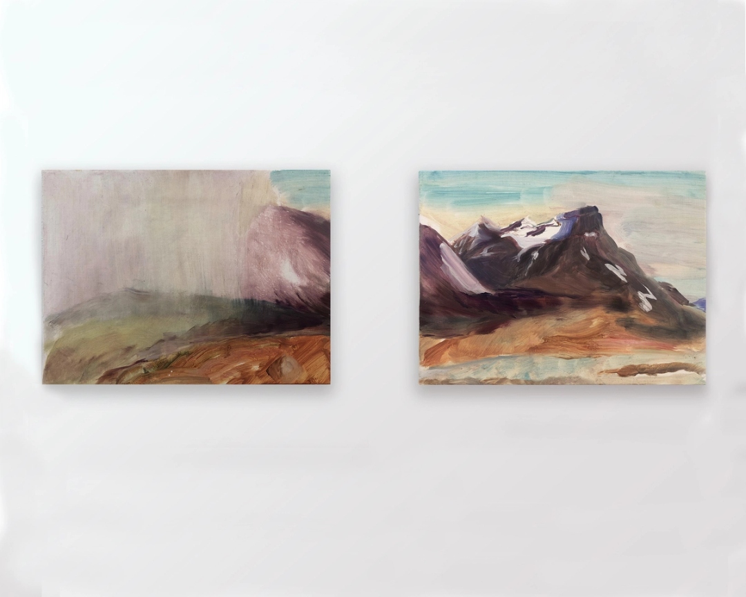 Thibault. Spakunafell (North Face) May 6 2021 6pm 8 degrees Celsius (diptych), 2021. Oil on linen. 12 x 33.5 in.