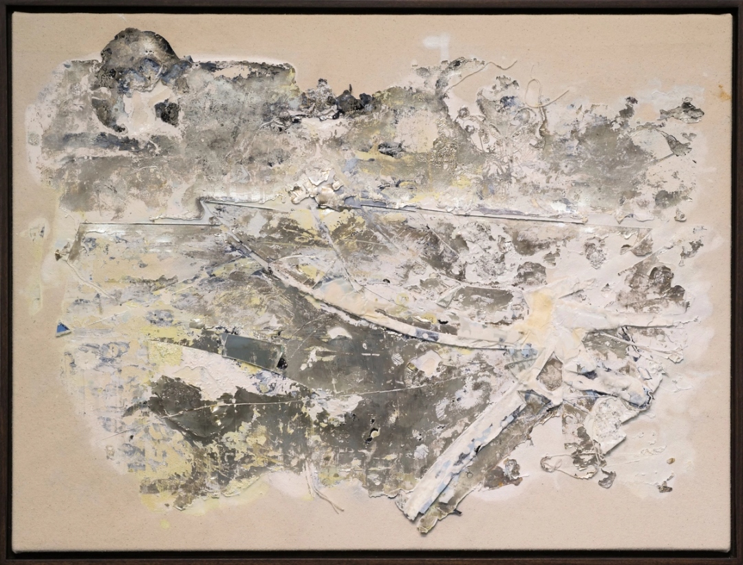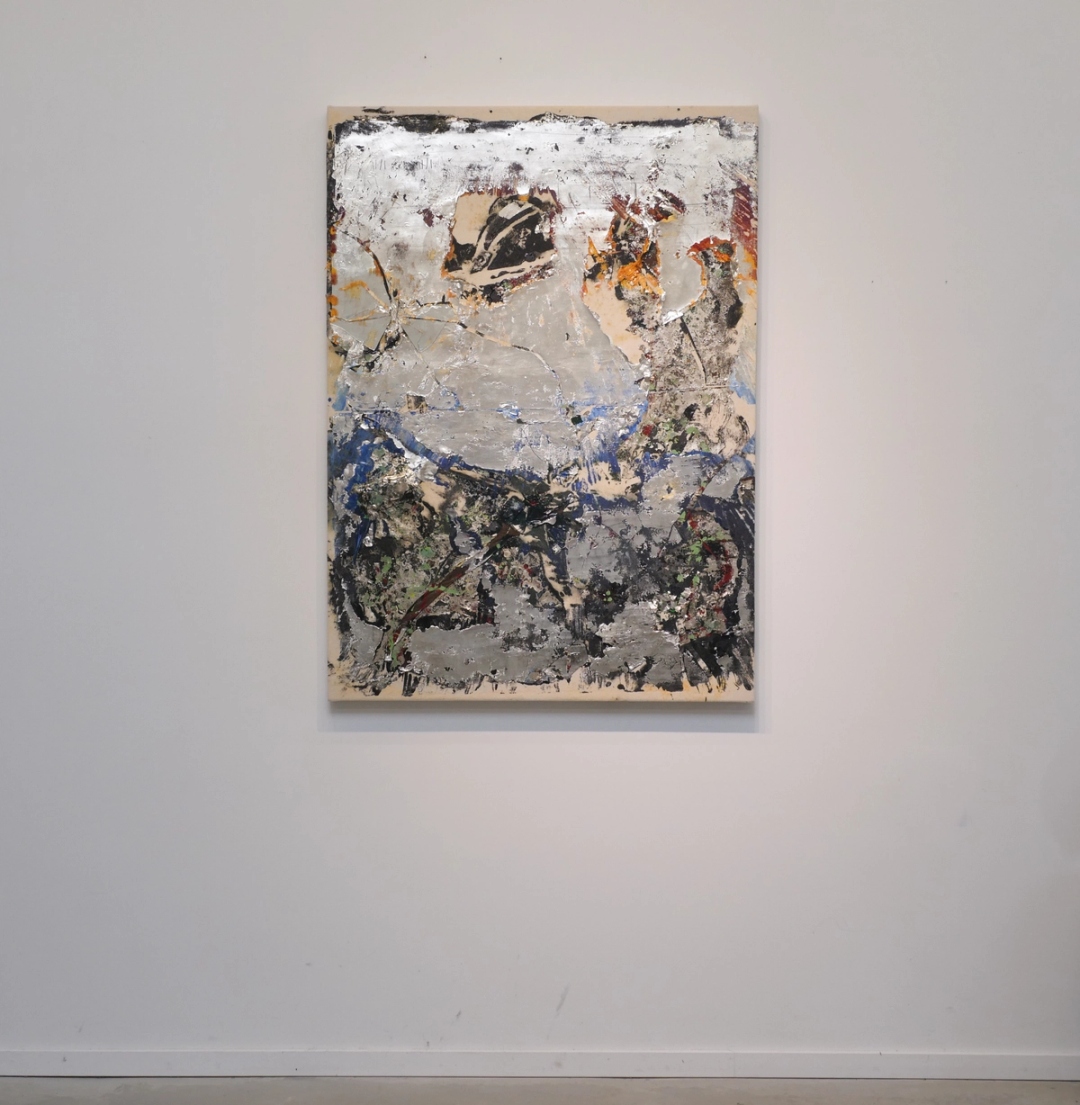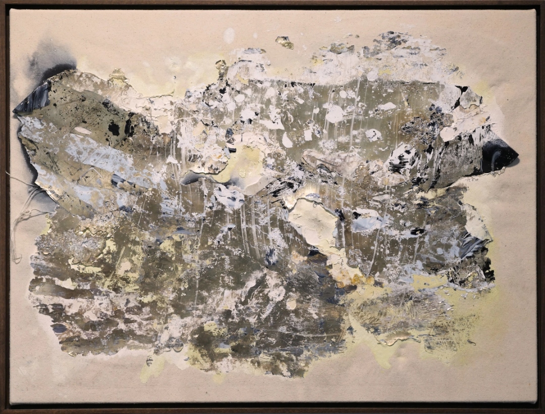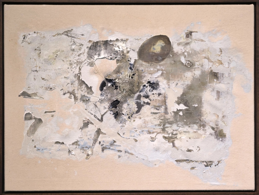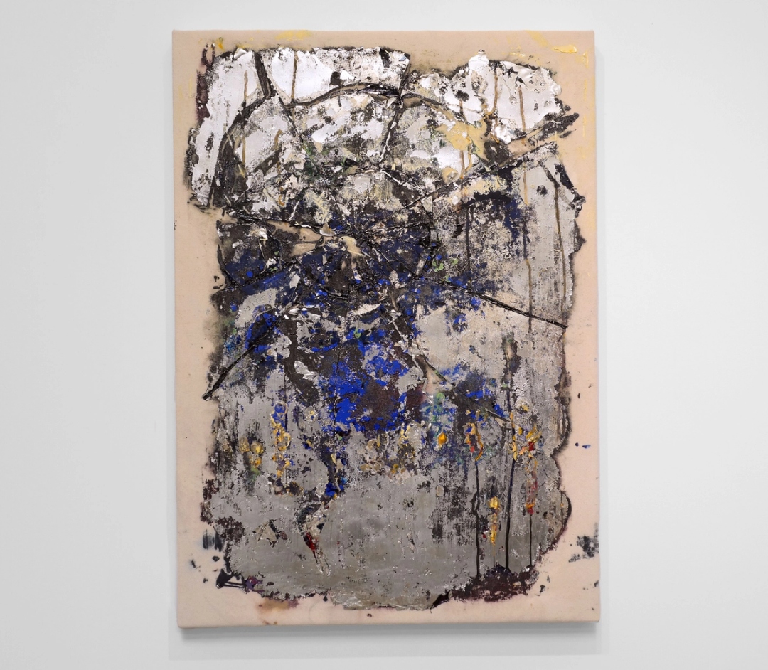 Edgar Arceneaux. Skinning the Mirror (Winter 4), 2024. Acrylic paint, silver nitrate, glass on canvas. 50 x 36 in.