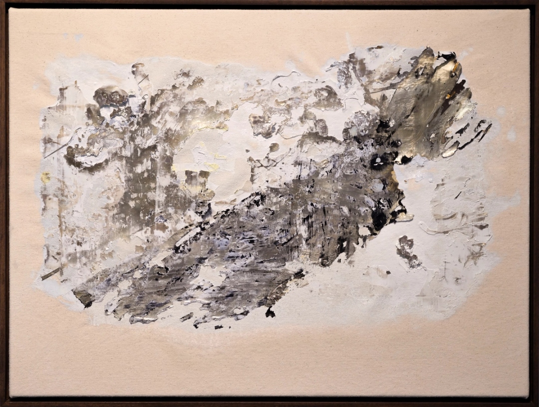 Edgar Arceneaux. Skinning the Mirror (Winter 2), 2024. Acrylic paint, silver nitrate, glass on canvas. 52 x 38 in.