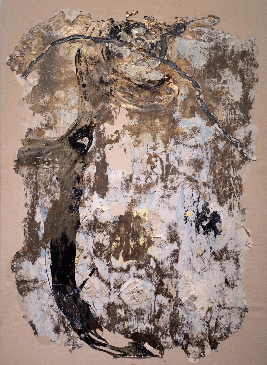 Arceneaux began the Skinning the Mirror series when he cared for his mother through dementia, watching her lose her sense of self and, ultimately, grieving her death. These works complicate the construction of knowledge through broken, layered, and sculptural surfaces that burnish and deepen with age until sealed. Arceneaux says of the time: "Dementia, the slow mental deterioration of the mind and body, mixes up actual and imagined memories into a confusing puzzle. Though these works are not autobiographical or narrative, the poetics of loss, grief, and love are in there."
