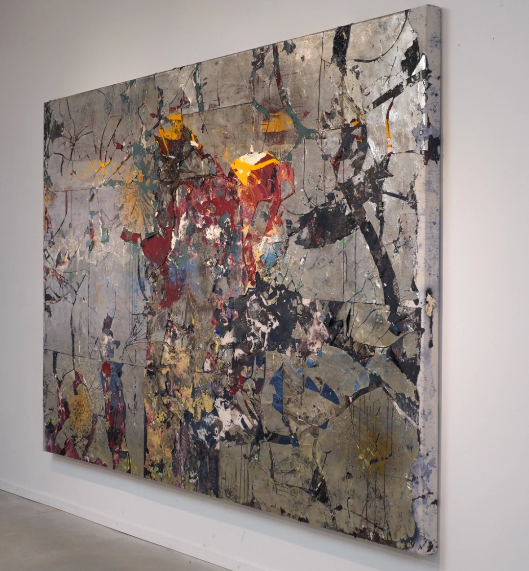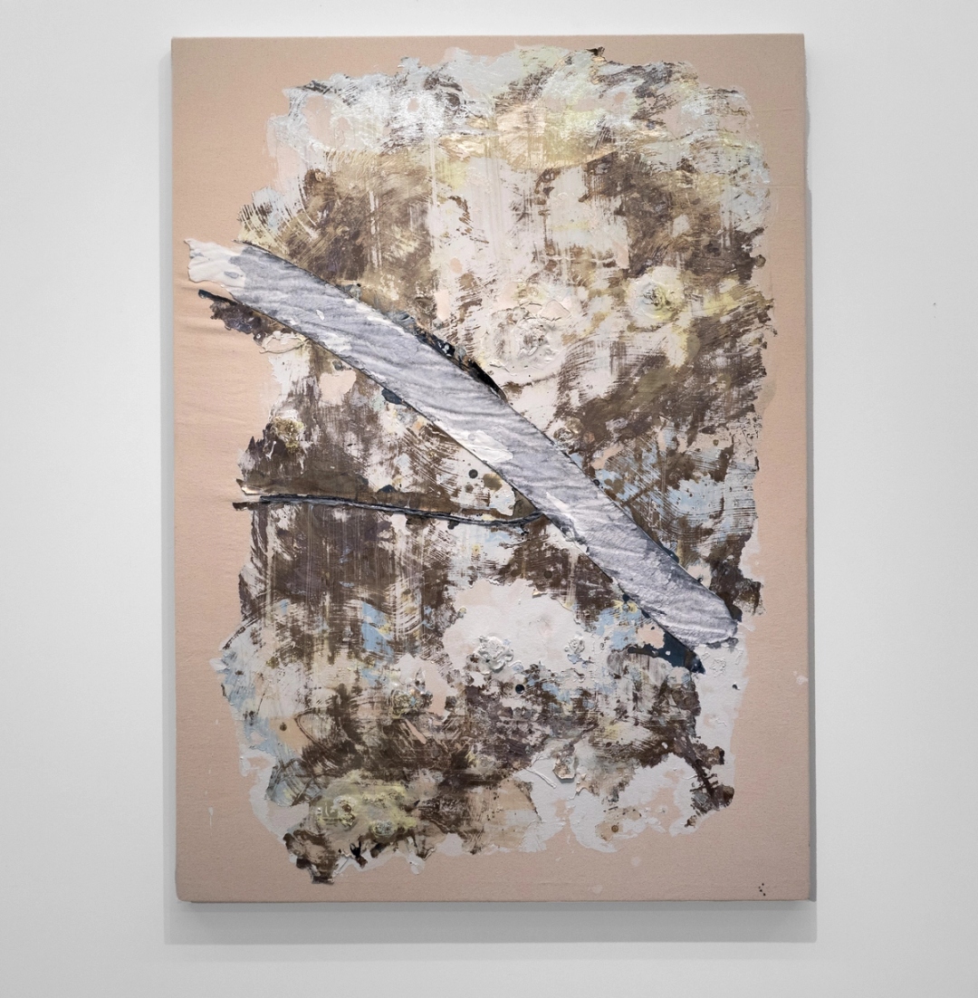 Edgar Arceneaux. Skinning the Mirror (Spring 4), 2024. Acrylic paint, silver nitrate, glass on canvas. 38 x 27 in.