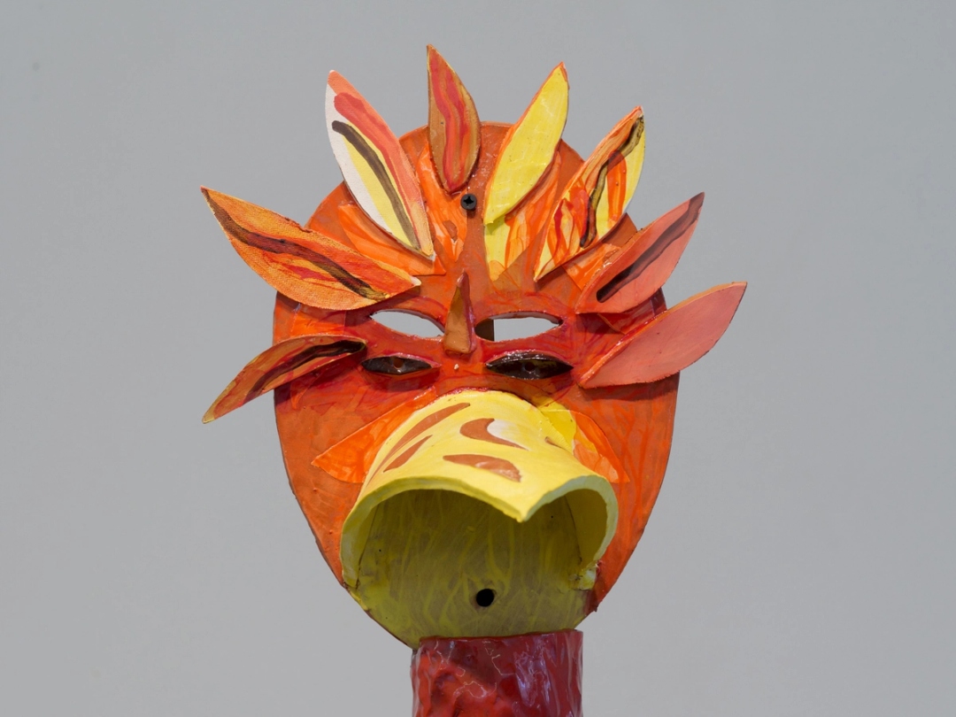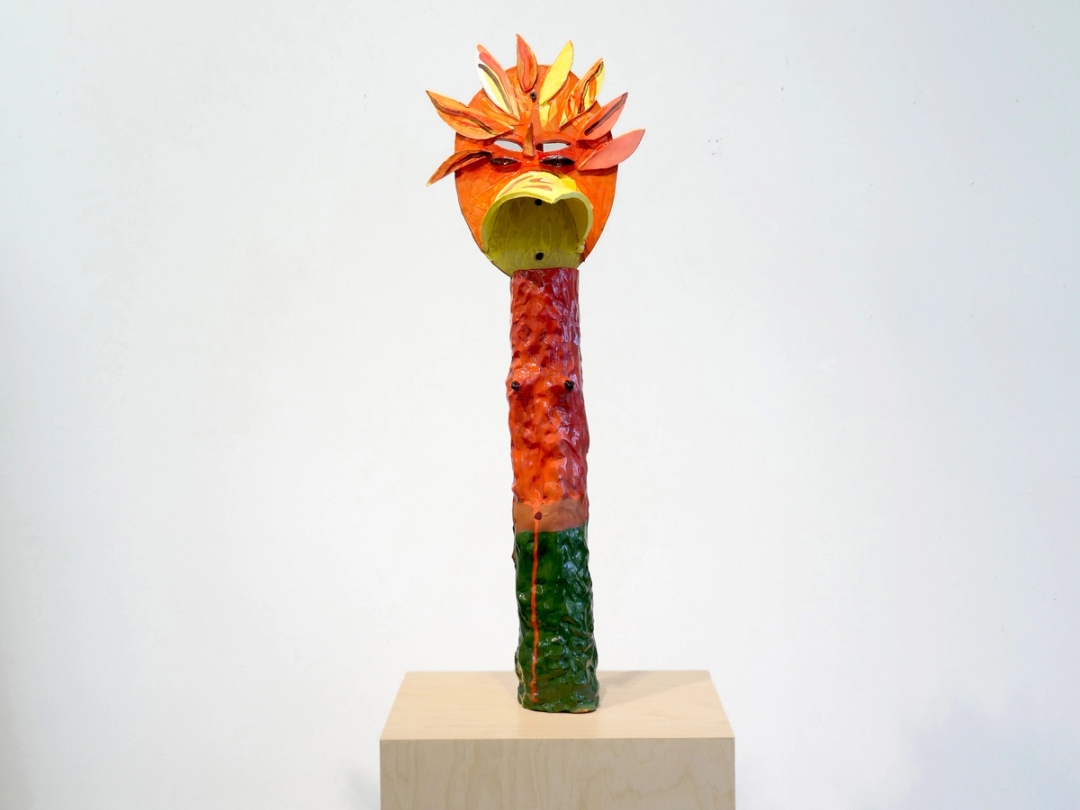 Tamar Ettun. Fiery Tall Demon with a Beak, 2022 [detail]. Ceramic, glaze and underglaze. 32 x 11 x 12 in.