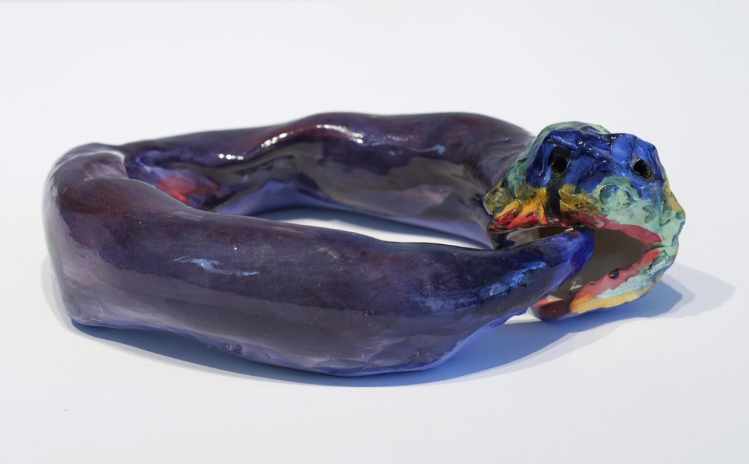 Tamar Ettun. Ouroboros Demon, 2024. Ceramic, glaze and underglaze. 2⅜ x 7½ x 5¼ in.