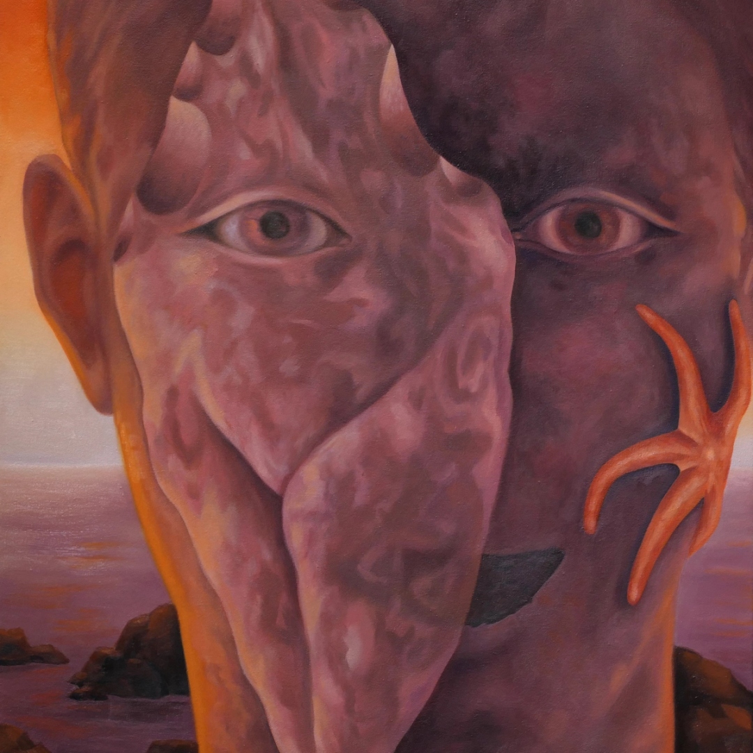 The recurring subject-matters of Kristen Sanders’ paintings – ancient mark-making, flint stone tools, skulls, seashells, medical mannequins – address the historical evolution and mysterious origins of our uniquely human consciousness. By layering her paintings with references to our primordial past, Sanders raises questions about the ongoing development of human consciousness in an increasingly technological future. Often isolated on windswept beaches, the figures in her portraits – such as the mannequin in Blood Star (2025) – straddle an uncanny line between self-aware and inanimate.