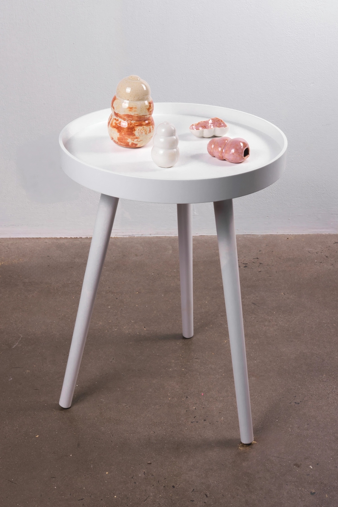 Ilana Harris-Babou, Soft Interior 1, 2024 (detail). Glazed ceramic, table. 28½ x 19½ x 19½ in.