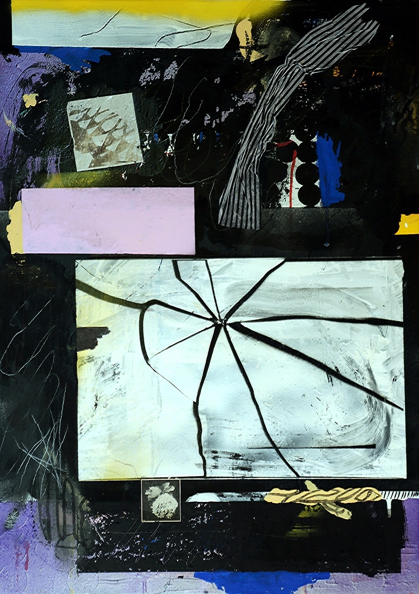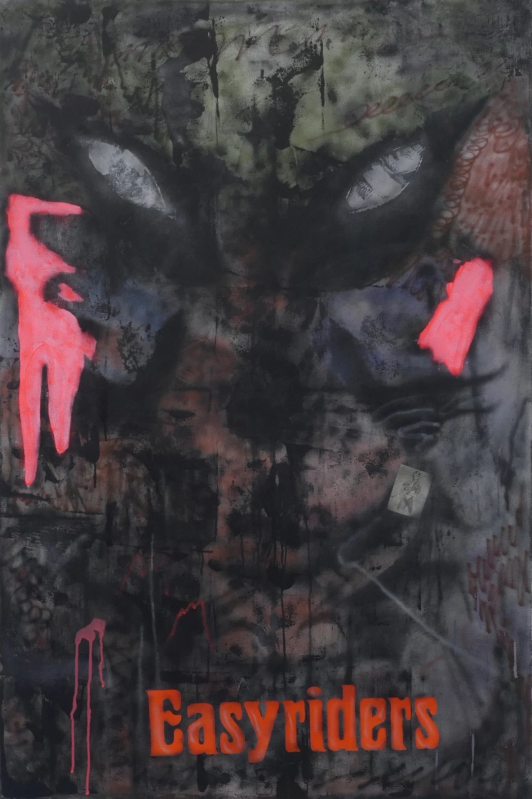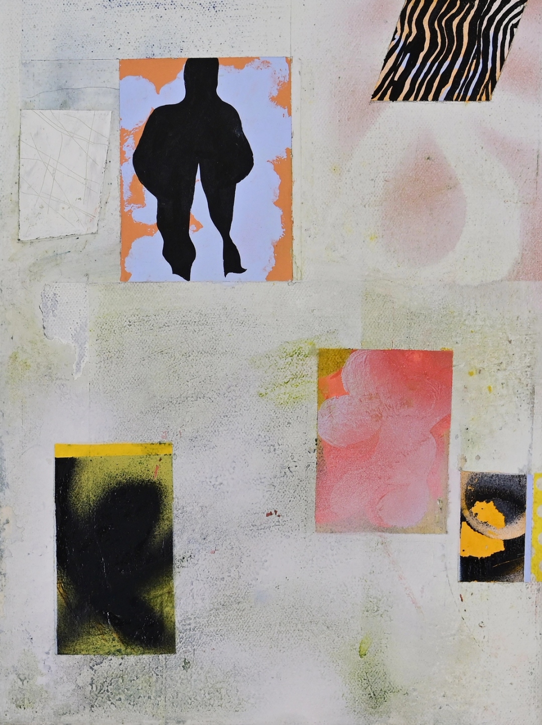 Flashe, gouache, collage, pencil, oilstick, spray paint on canvas