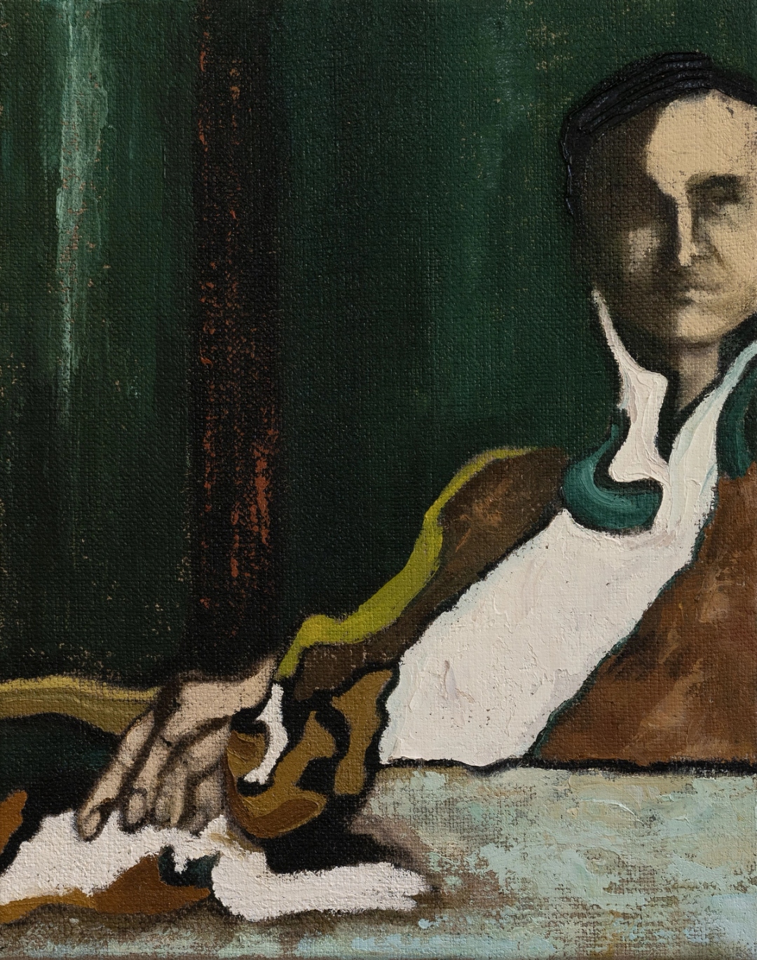 Maria Kozak. The Bon Vivant, 2025. Oil and acrylic on jute. 19¾ x 15⅞ in.