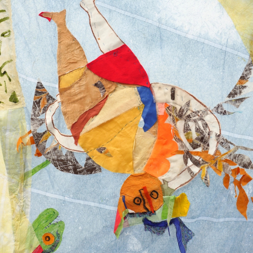 The Wave Caves (2022-2023), an immersive installation in Bella Abzug Park, creates a safe haven for Lilit, who was banished for pursuing independence. These monumental works, constructed of painted, hand-dyed and stitched boat sails, reference the medieval myth in which Lilit escapes to the Red Sea.