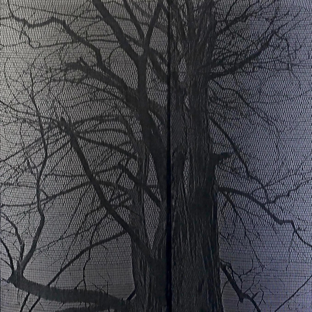 Forest fires; smoke inhalation; microplastics in our ecosystems, blood, and lungs; loss of homes past and future. The hand-woven pieces in “Memories of Future Fires” each start with photos I took in a fire-decimated landscape in the Pacific Northwest. I reduce the trees in these landscapes down to their fundamental shapes before rematerializing them with petrochemical-derived monofilament. As I look to connections between the life-sustaining circulatory systems that are both internal and external to the human body, the abstracted tree forms also begin to evoke hearts and lungs. Up close, the transparent, porous, woven structures take shape as cells and flames.