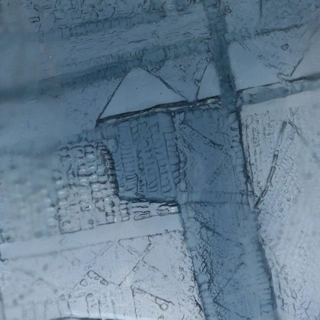 SaraNoa Mark. Forward toward dusk, 2025 [detail]. Cast glass. 13½ x 14 x 1¼ in.