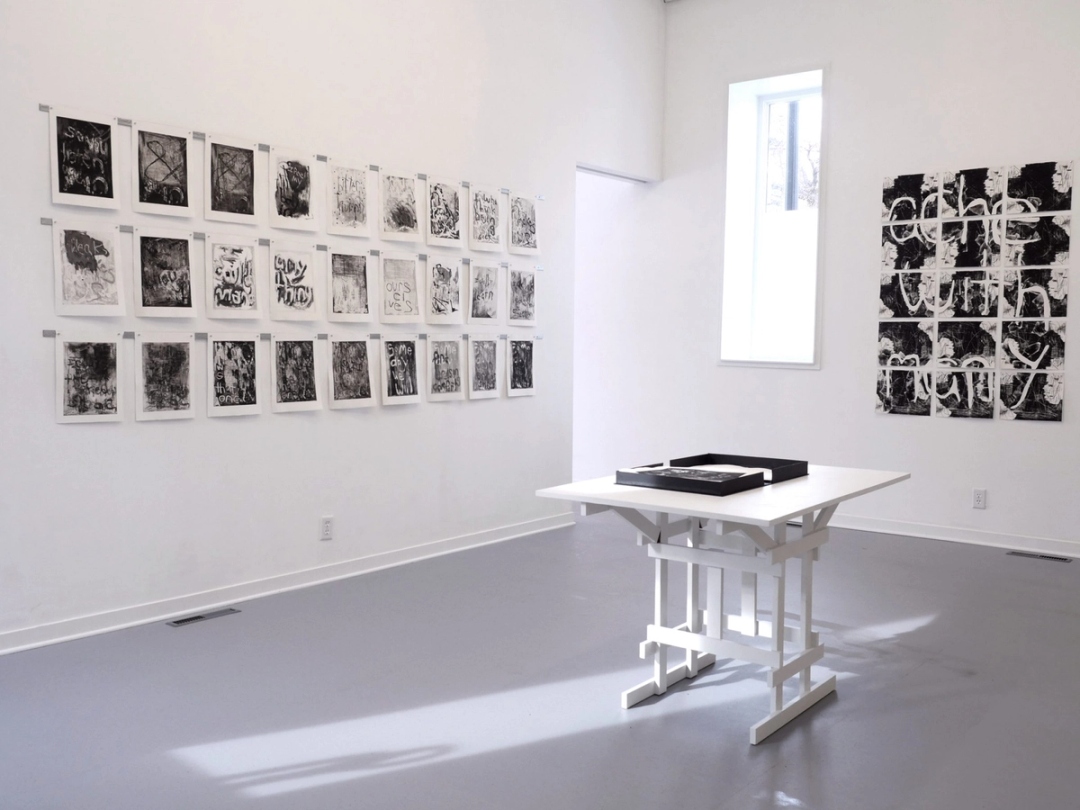 Dreamsong is pleased to present A featherplucked from its bird, a solo exhibition by Minneapolis-based artist Benjamin Merritt. For the artist, the process of printmaking is deeply related to his experience of living with a chronic illness. According to Merritt, “The print is a metaphor for continual healing, its morphing physicality a reflection of the body.” The artist works from copperplate etchings, scraping away the copper to transpose a long history of gestures and marks on to the final print. His practice serves as a vehicle to think through his body, tracing it through layers of marks and poetry to create a communal, reflective space for what it means to be sick.