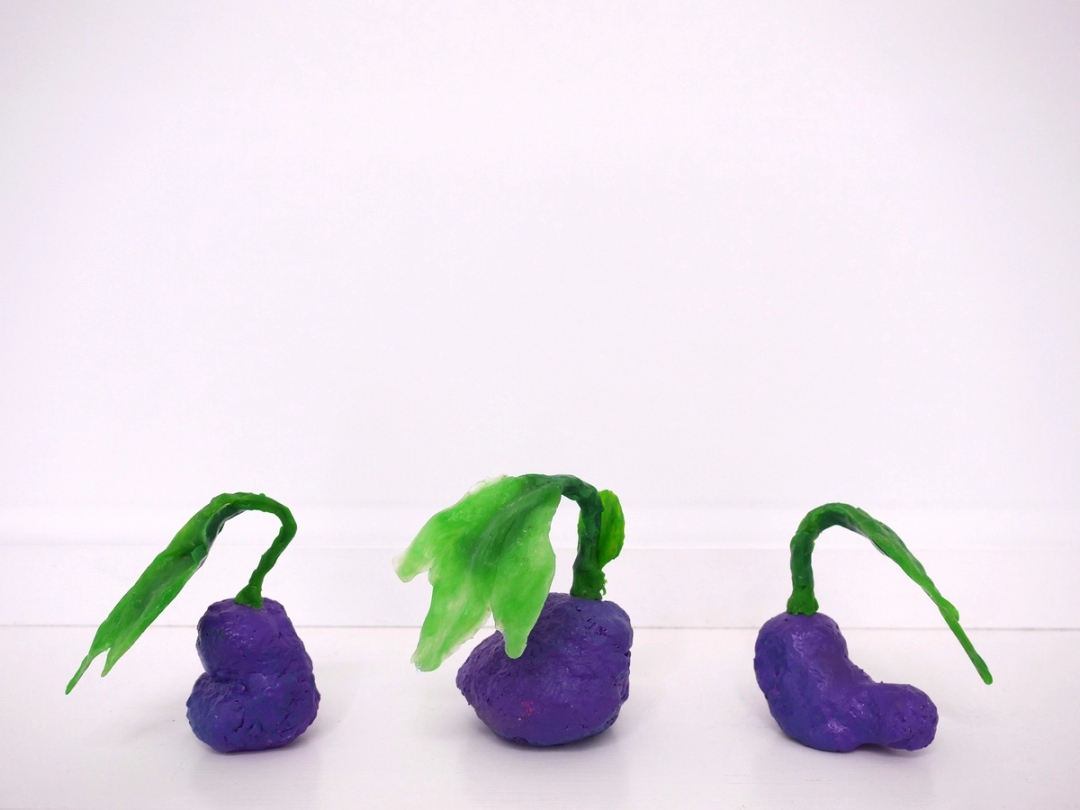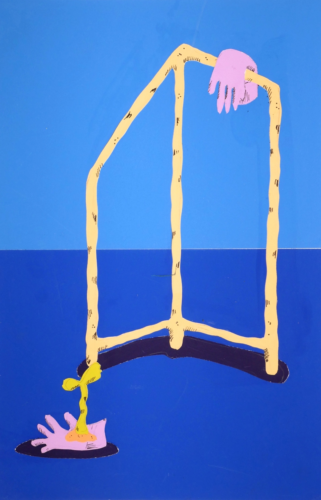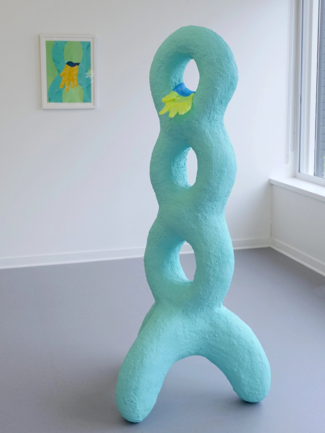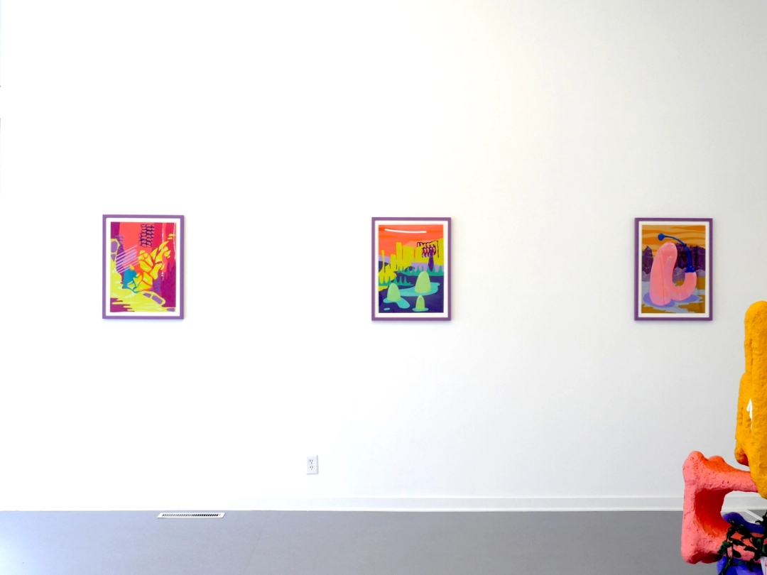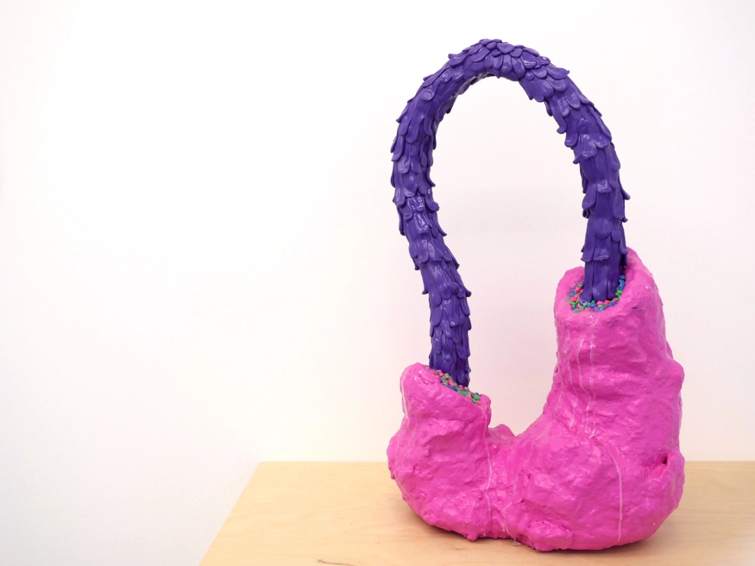 Dreamsong is pleased to announce the gallery’s first solo exhibition for Minneapolis-based artist Allison Baker. Adorned with glistening teal tongues and bubblegum stucco, Abject Permanence is a fever dream that pops with color, kitsch, and a come-hither wink, teetering between salivating desire and queasy revulsion. In an expansive exhibition of new works in sculpture, collage, and video, Baker probes how desire functions in a domestic sphere stratified by gender and class.