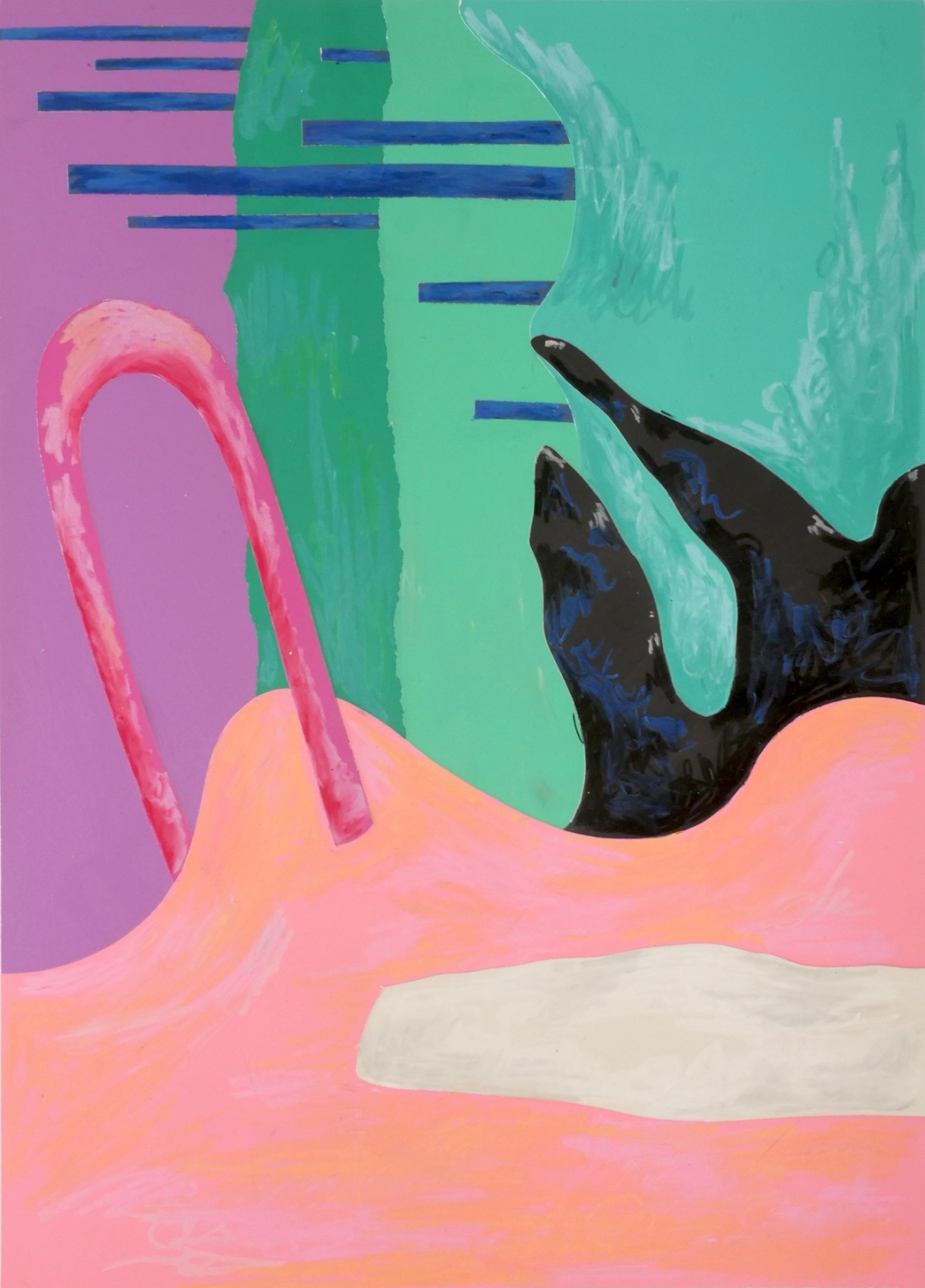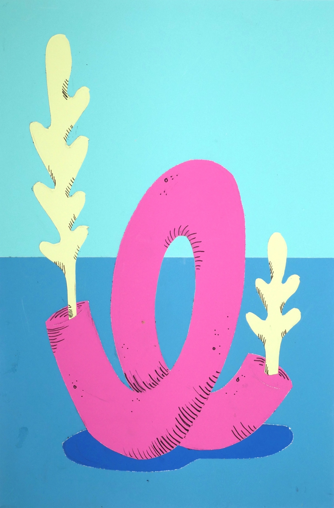 Ink on hand-cut Color-aid paper mounted in custom frame (white).