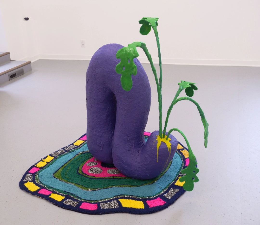 Paper pulp, foam, steel, resin, silicone, sand, hand-tufted rug.