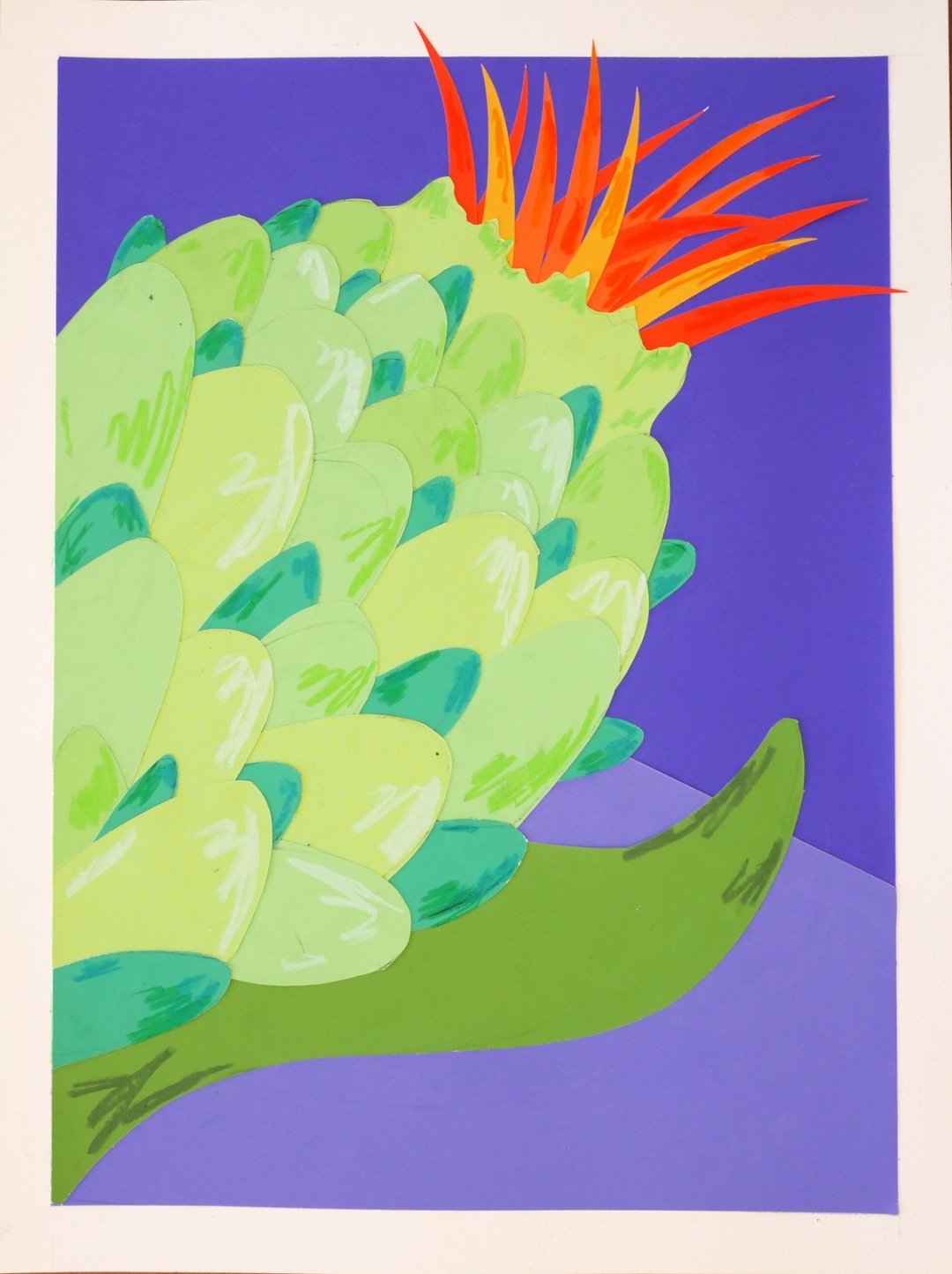 Pastel on hand-cut Color-aid paper mounted in custom frame
