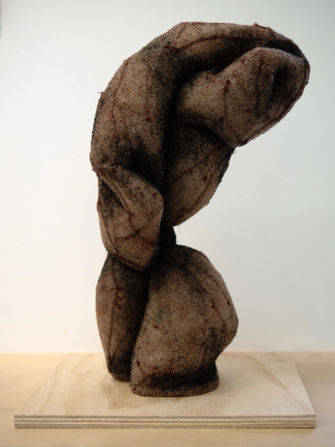 Nicole Havekost. Contort, 2026. Wool felt, polyurethane foam, wire, thread, dry paint pigment, crushed black onyx, shellac. 21½ x 12½ x 9½ in.