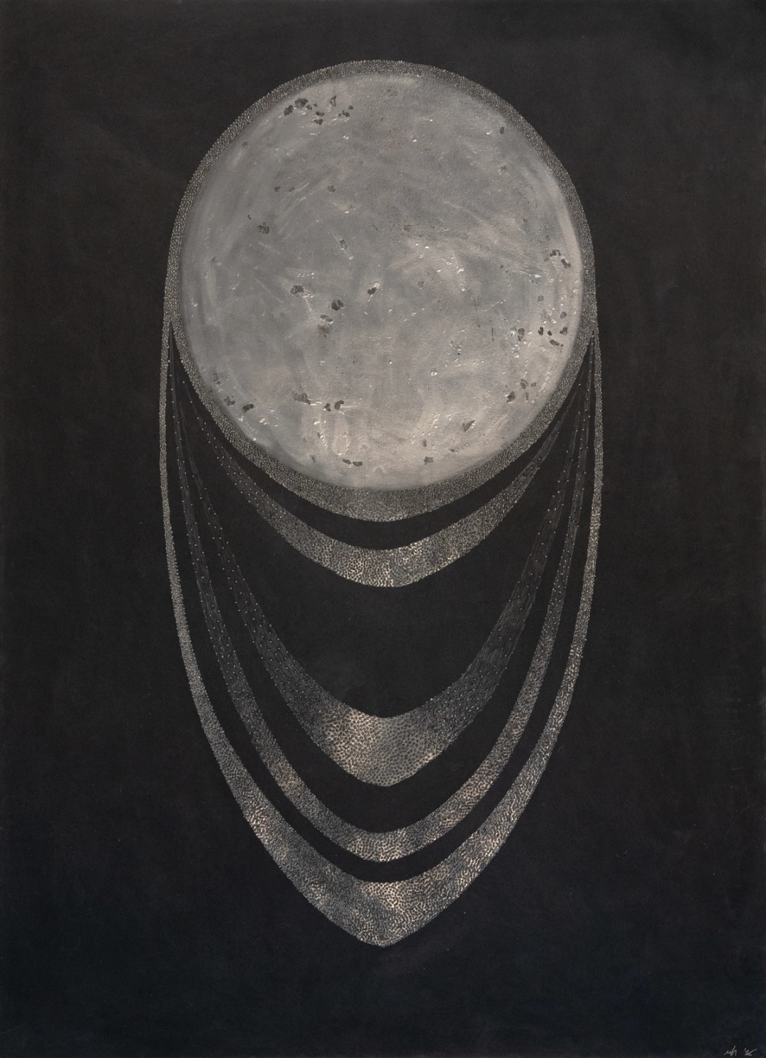 Nicole Havekost. Ringed, 2026. Soft pastel, graphite and graphite putty on rag paper. 30 x 22 in.