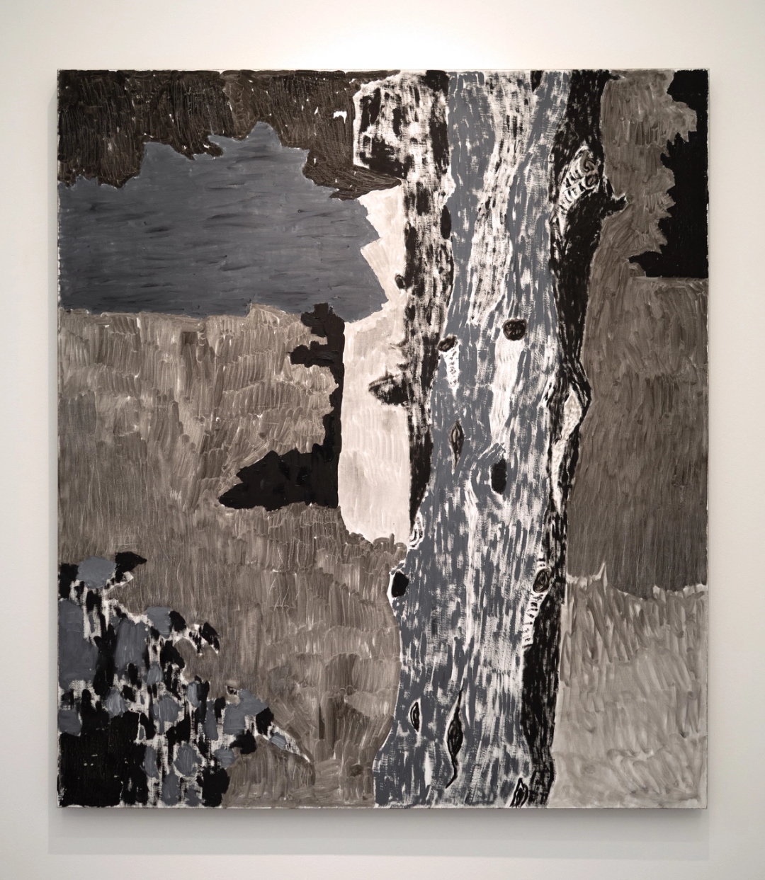 Michon Weeks’ four paintings in Moonlight originate in observations recorded through close, contemplative attention to the natural landscape and built environment that she encounters on meditative walks or notices through the windows of her home in Northfield, MN. Inspired by her reading of The Blue Sapphire of the Mind (Douglas E. Christie) which argues for changing the quality of our attention in order to cultivate deeper interconnectedness between ourselves and the living world, Weeks became attuned to the concept of the shining darkness in which perception is charged solely with presence and the need to clarify, classify or resolve is disavowed. Veering between abstraction and landscape, Weeks’ paintings reflect the shifting contours of consciousness.
