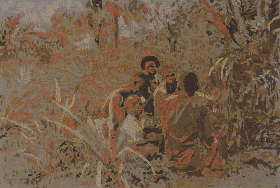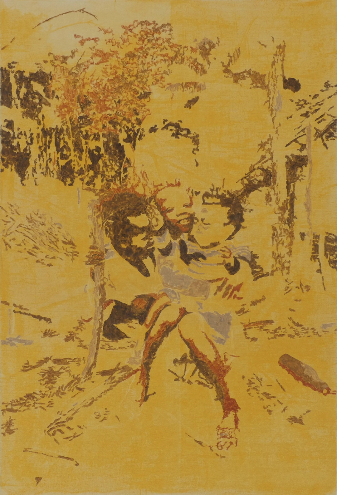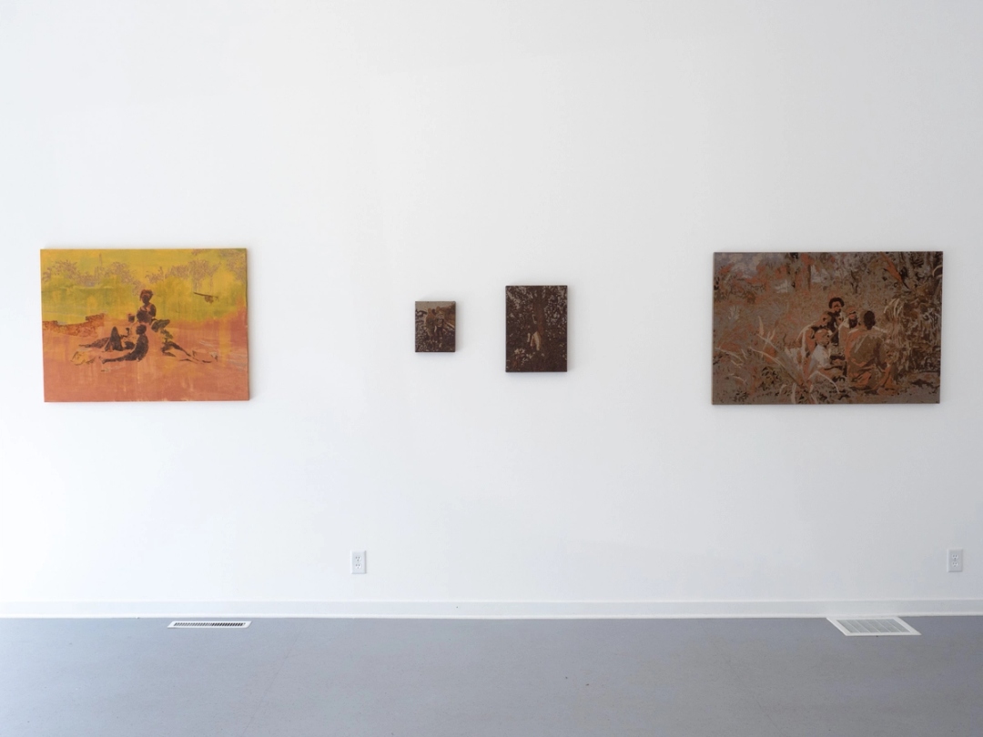 Dreamsong is pleased to present ndɔmi dɔmi, Stephanie Lindquist’s first solo exhibition with the gallery. Named for the homophonic MƐnde words for ‘floor’ and ‘story,’ the works in the exhibition depict the daily life of residents and the surrounding environs of Mɔndema, a village in Sierra Leone. Of Liberian ancestry, Lindquist’s recent time spent in West Africa gave her the opportunity to build lasting relationships while learning about and participating in local approaches to farming and cooking. The intersection of agriculture, sustainability, and community is central to the artist’s practice, and she returned from Sierra Leone with soils of varying hues sourced from the grounds of a local mine, preschool, swamp, farm, well and construction site. Using these soils as raw pigments, Lindquist produced a body of work constructed from the very land that feeds and sustains life in Mɔndema.
