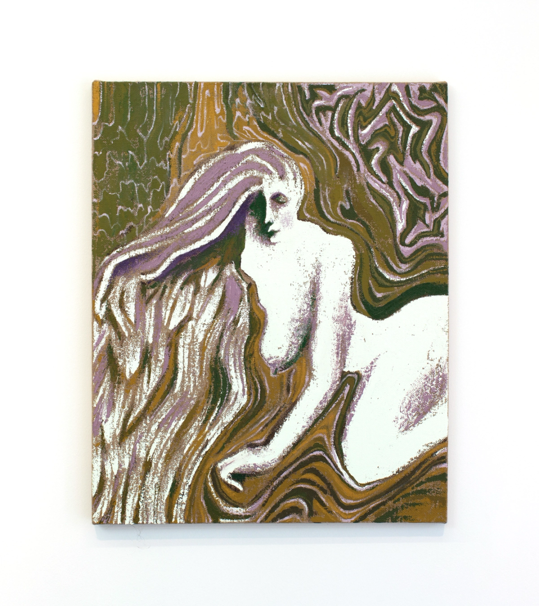 Passages explores states of metamorphosis in diaphanous paintings that chart experiences of energetic transitions and moments of coalescence. Addressing the psychological implications of personal growth, the work depicts uneasy protagonists navigating fluctuating states of consciousness. Prone to pareidolia, Kozak begins each painting with intuitive digital sketches, pushing and pulling color fields until forms emerge and building compositions through a process of excavation, remixing and digital collage. Referencing these studies as primary source material, the artist largely paints with a palette knife on linen and jute, using their natural textures to add depth and tactility while varying densities of glazing and impasto serve the psychological complexity of her figures.