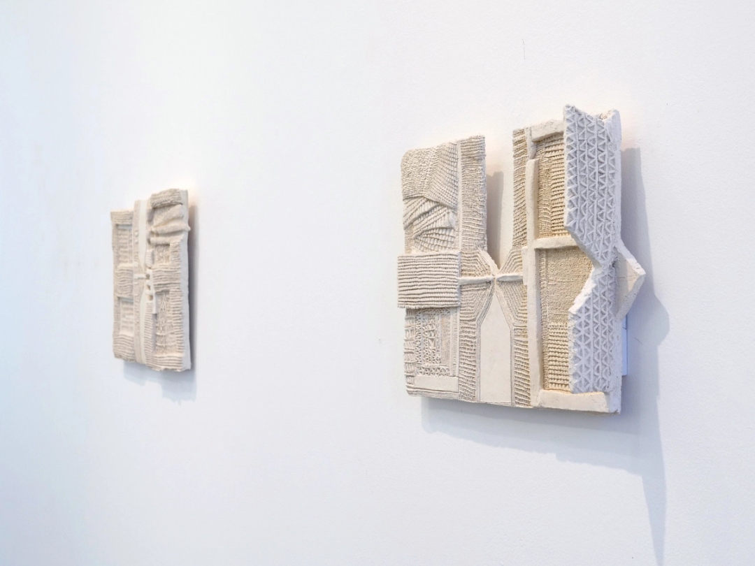 SaraNoa Mark. Outside Time, 2024. Hand-carved clay. 12 x 17 x 2¾ in.