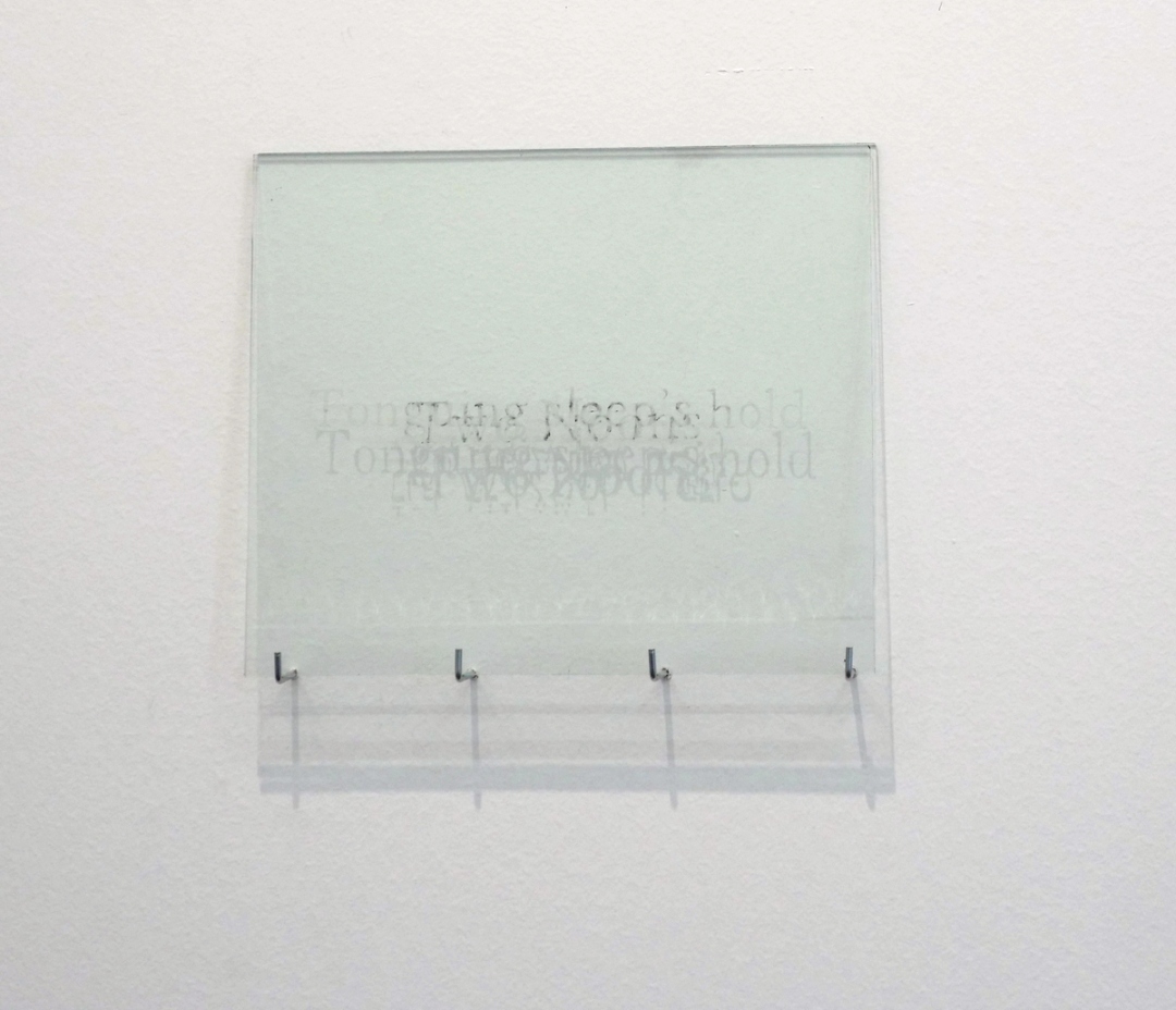 SaraNoa Mark. Tonguing Sleeps Hold, 2024. Hand-carved glass. 10 x 12 x ¼ in.