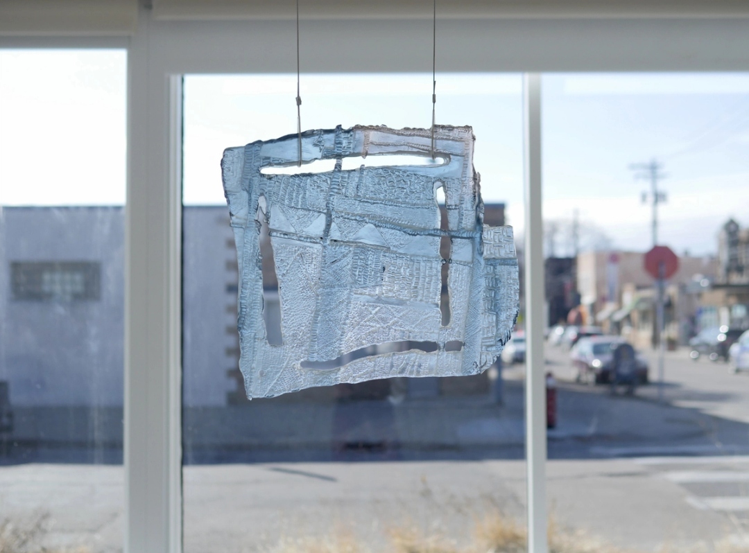 SaraNoa Mark. Asking the sun to stand still, 2024. Cast glass. 14 x 14½ x ¾ in.