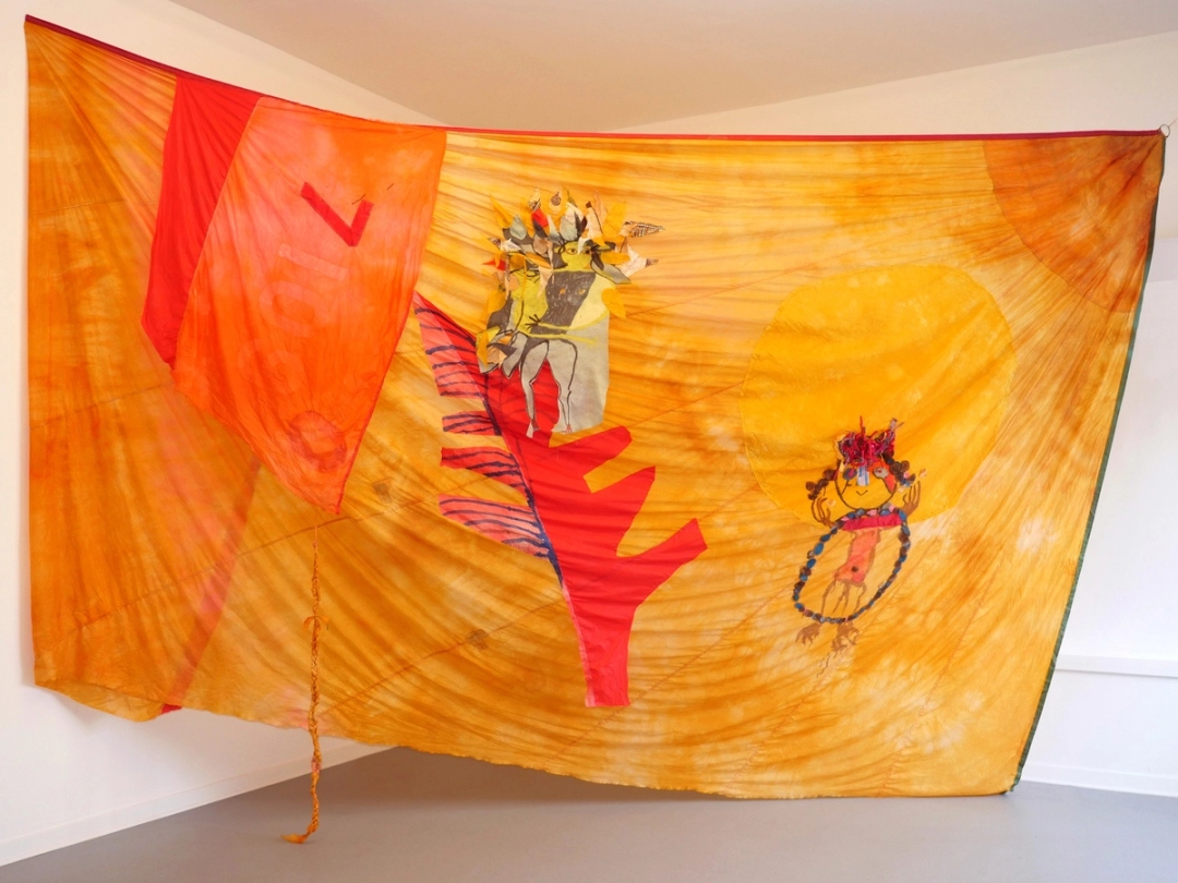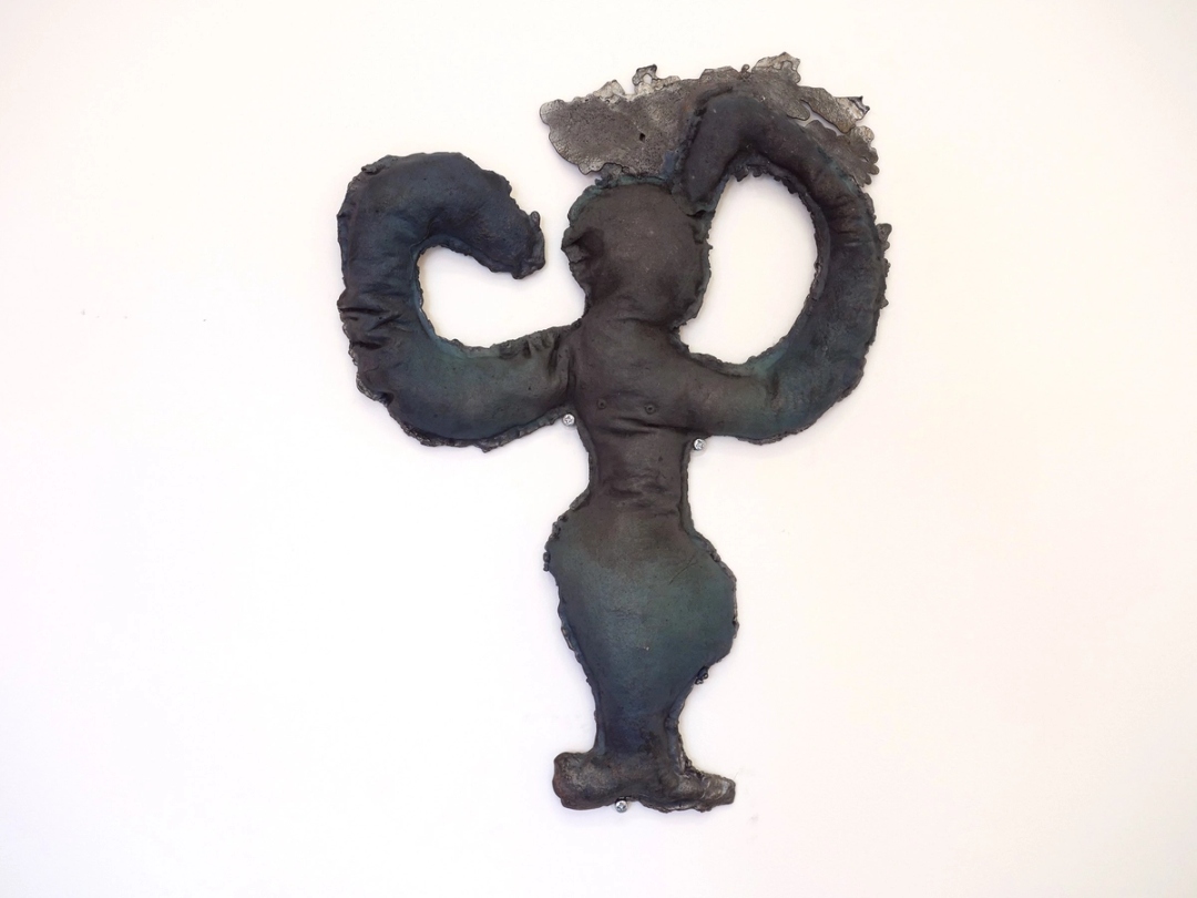 Ettun (b. Jerusalem, Israel, 1982) uses textile, drawings, sculpture, video and performance to examine somatic empathy, trauma-healing modalities, and ritual. Her recent work centers on Lilit, an aerial spirit demon with origins in Sumerian, Akkadian, and Judaic mythology. In the 2nd – 7th centuries, artist-healers created spells, drawings, and talismanic objects to trap demons like Lilit, who was characterized as a dangerously sexual female entity, and appeared frequently on incantation bowls used in protective rituals. Enthralled by the images inscribed on these ancient objects, Ettun began studying their vocabulary and eventually, developed her own language that revives these practices through a contemporary feminist lens, subverting Lilit’s misogynistic archetype and revamping her image as an Empathic Demon.