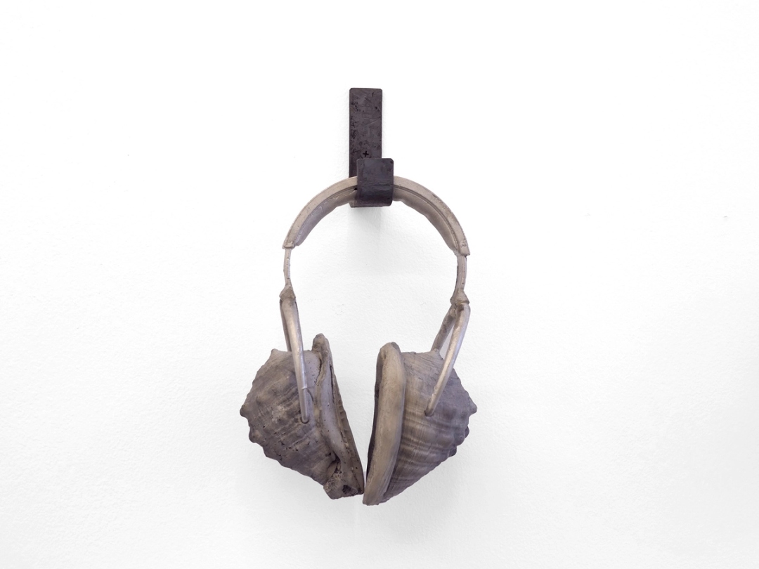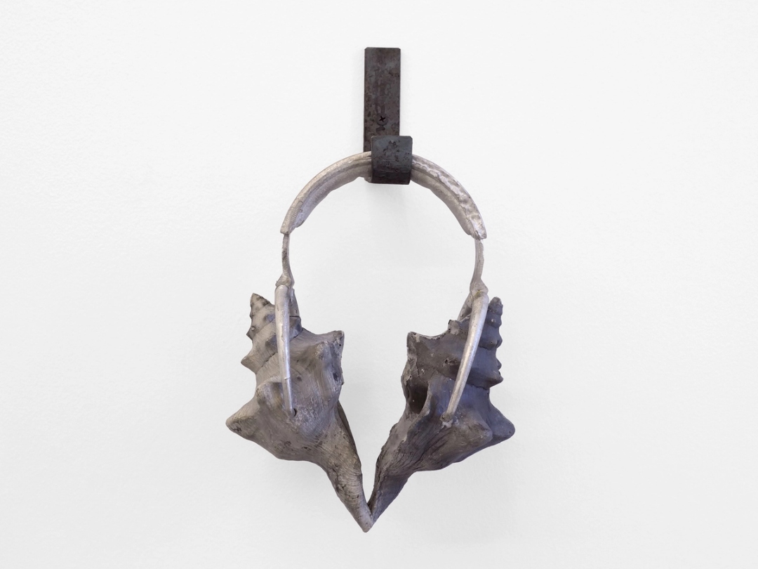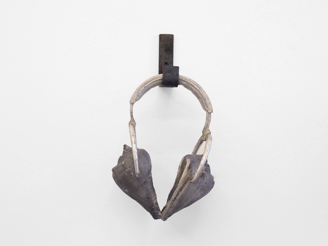 Alexa Horochowski. Fiber Conch, 2024. Concrete, pewter, steel. 12 1/2 x 7 x 5 inches.