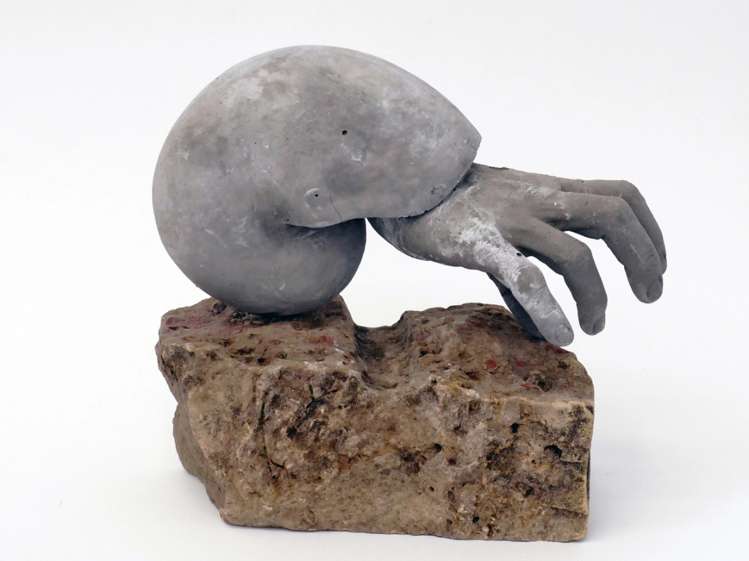 Alexa Horochowski. Nautilus, 2024. Concrete, gypsum, limestone, steel. 10 1/4 x 11 x 5 1/2 inches.
